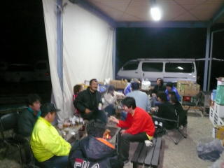 日も暮れ始め 急いで設営の後 主催者さんたちの宴会へ混ぜてもらう