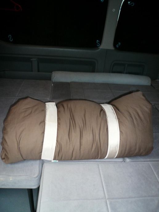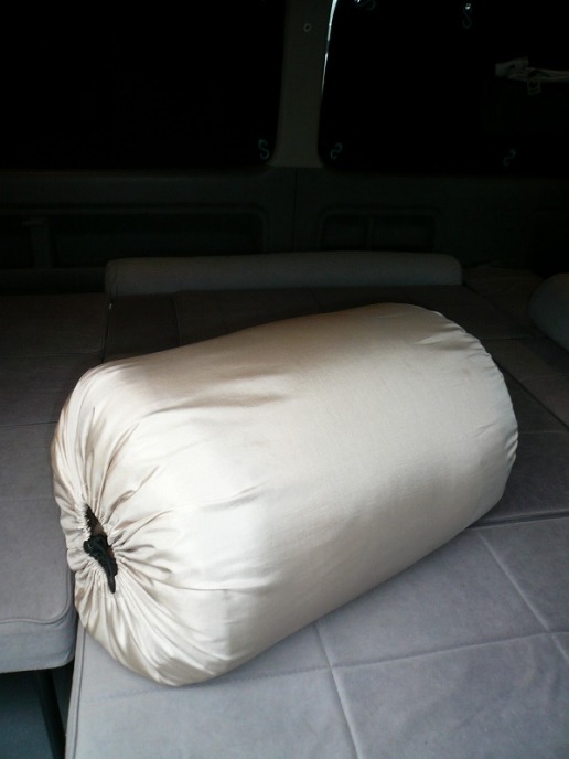 今回は開発テスト中の トランポ用羽毛布団「OFFトン(仮称)」↓を持ってきてるので怖くないのさ