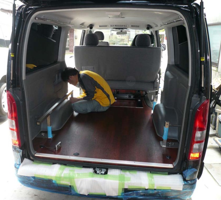 ローダウンフルキット、セカンドシートロングスライドレール、リヤモニターセット、フルエアロ を装備しました