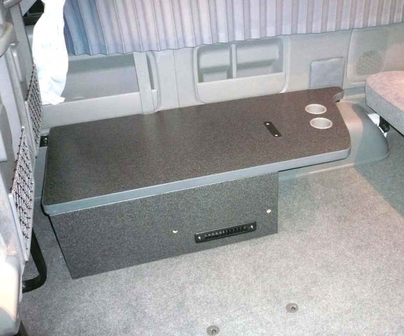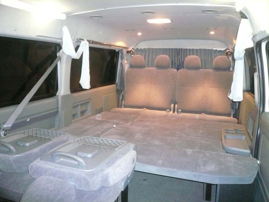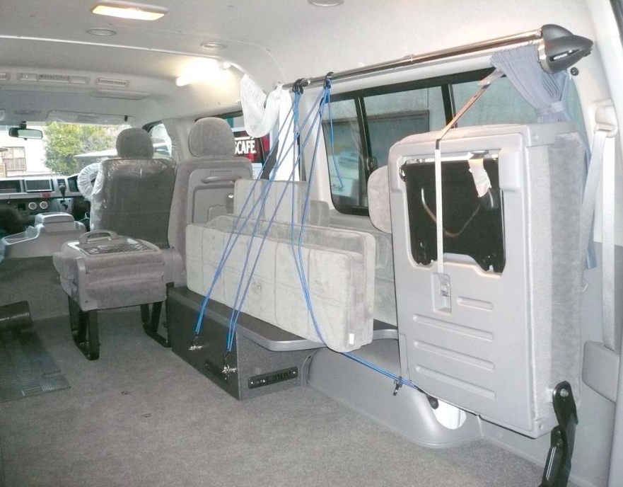 10人乗りで 総内装付き ラゲッジルーム兼定員位置の跳ね上げフォースシート+左壁にシート無し