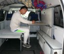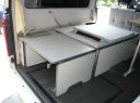 | BTRを積み何処へでも出かけるM様 「積めない事は無いんだけど もっと便利にしたい」 とのことで 打ち合わせの後、 ○タイヤが当たる所はツルッとした物にしましょう ○出っ張って引っかかるリヤヒーターは 思い切って取り外し FFヒーターを車外に着けましょう ○せっかく 強靭なボルト穴がルーフサイドにあるので 使っちゃいましょう にちょっとリフォーム この(ちょっと) 意外にテコズッチャイましたが 喜んでもらったので良しね キャビンでのすごし方(スタイル)が確立されてきて、必要な 形 が見えてきたM様 さらなる 追加架装で ワンオフマイルームへ ○お車の中での事務仕事を便利にする テーブルと ベット長の延長を両立させるための工夫を 追加しました。 |