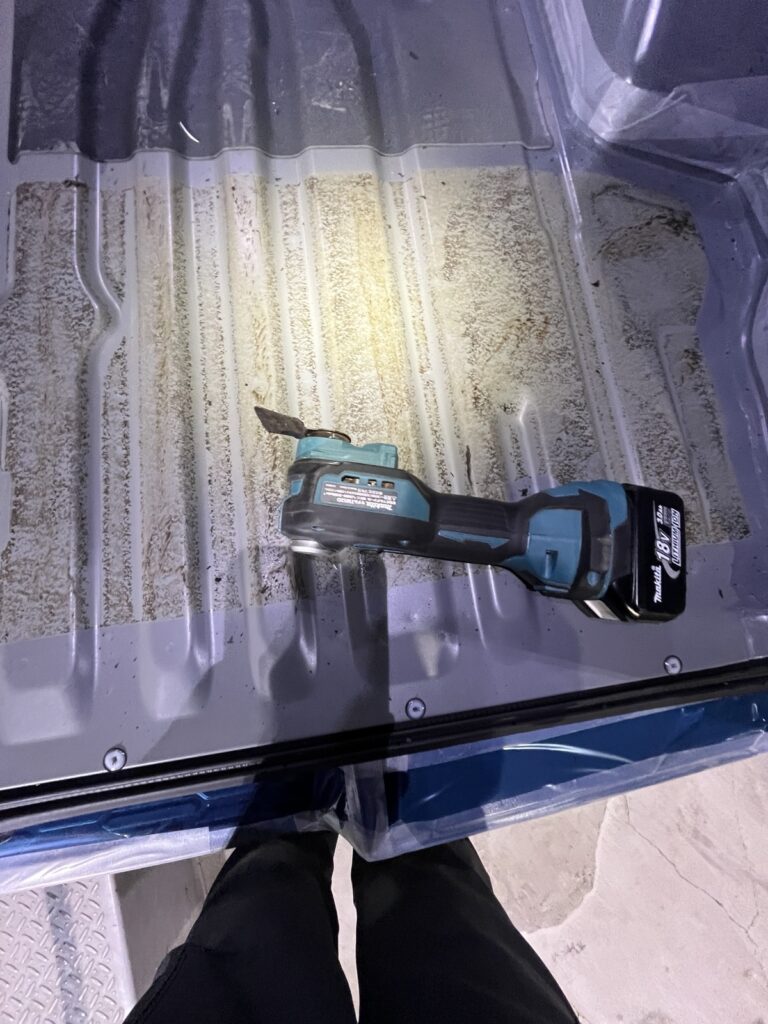 この子は、パワースライドドアで有りながら、タイダウン用フックをつける為、ネジ止めの柱が立ちますが、外せば、ステップカバーは外せます、パッコンです。