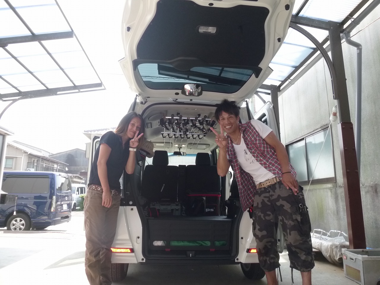 7ロッドしっかり留めさせて頂きました 「折角広島へ来たので 有名どころのバス釣りに寄ってから帰ります」との事 どこかでオフタイマーと遭遇するかもねー 白のN-Box+君よー