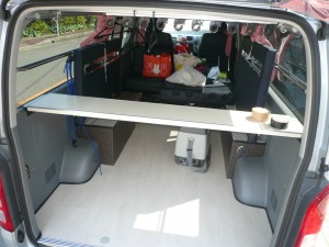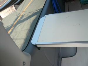 脱着が楽なようにR処理もされ 車内で使う ツボ をしっかり押さえてあり「すばらしい」 「お店に余ってたテーブル板を切って 端っこはアルミアングル貼っただけよーあんまり見ないデー」と謙遜されるおD様 いやいやこれは凄い イイっ ですよ