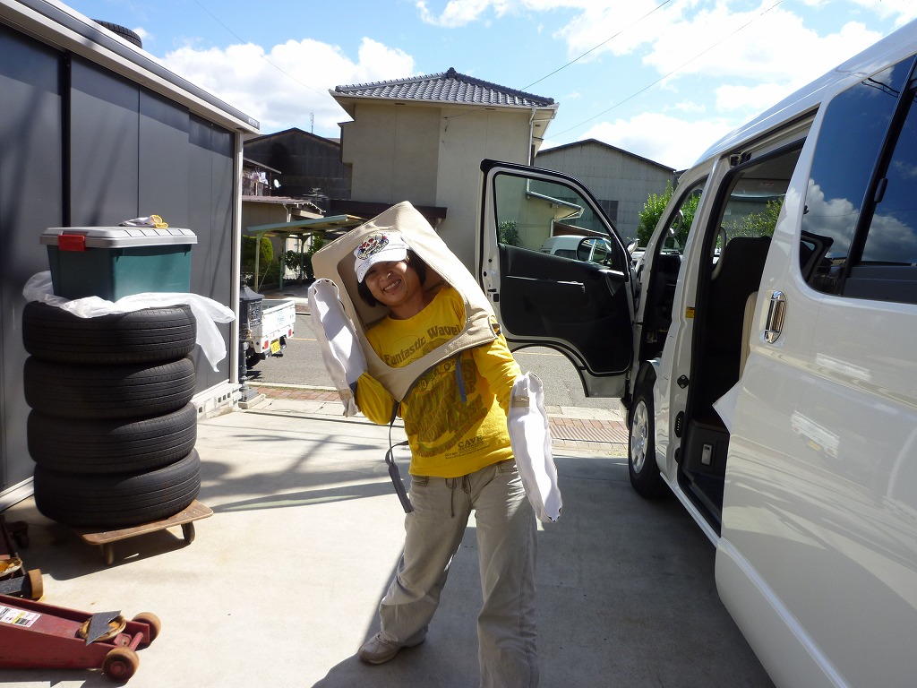 お祝いに行く前の使える時間に ニューデモカーの新パック ボーデイジの作業 を嫁さんとしてました