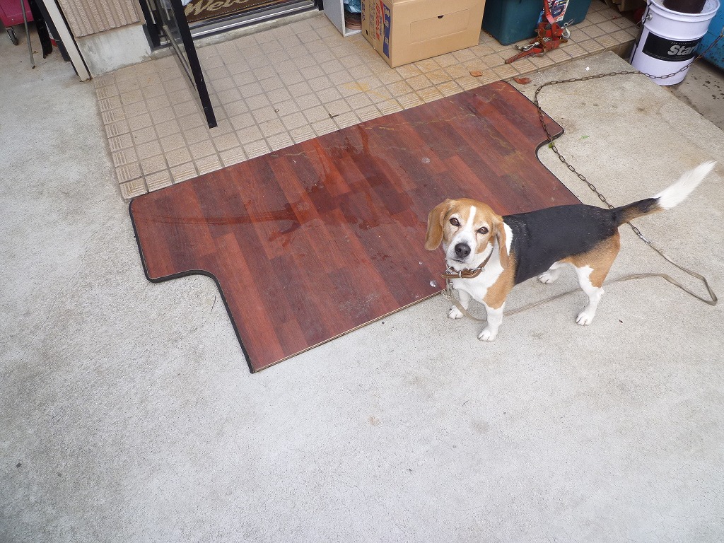 オフタイム出入り口 雨ざらしで放置 カール君もお客様も踏みまくりの 紫外線バリバリな 屋外に放置