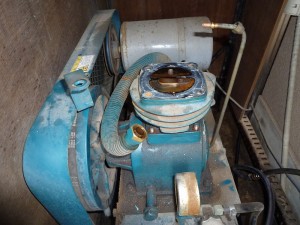 オフタイムでは 糊吹き作業が沢山あるので エアーコンプレッサは必項なのですが 最近 コンプレッサが良く回るねぇとか思ってましたら どうも吐出力が落ちてるようで 「O/Hせんにゃぁ」と 先輩から