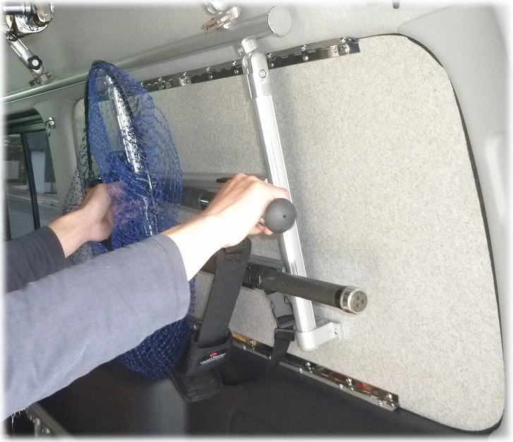 今日は 課題だった 魚を引き上げるための 「 網 」 これを 如何にスマートに 使いやすく邪魔にナラナいように 括り付けるか
