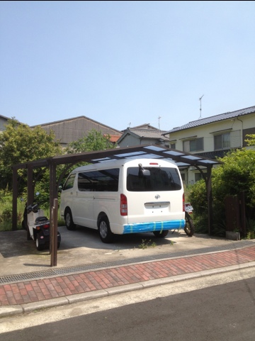 これカーポートを 貰いました ので オフタイムの作業場に 移植するのです 高さが足りないから 足建て 上に上げます