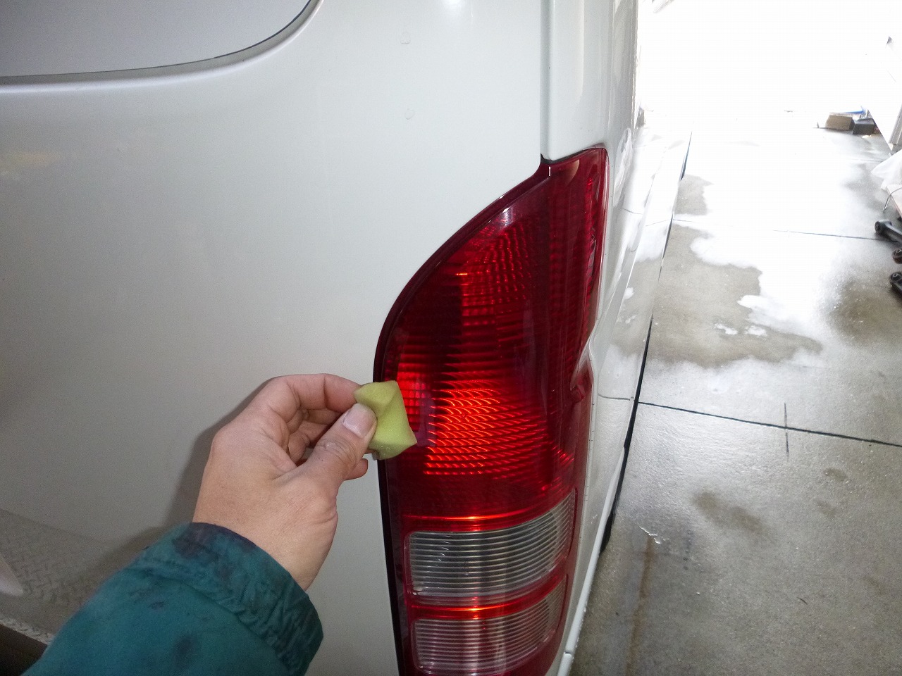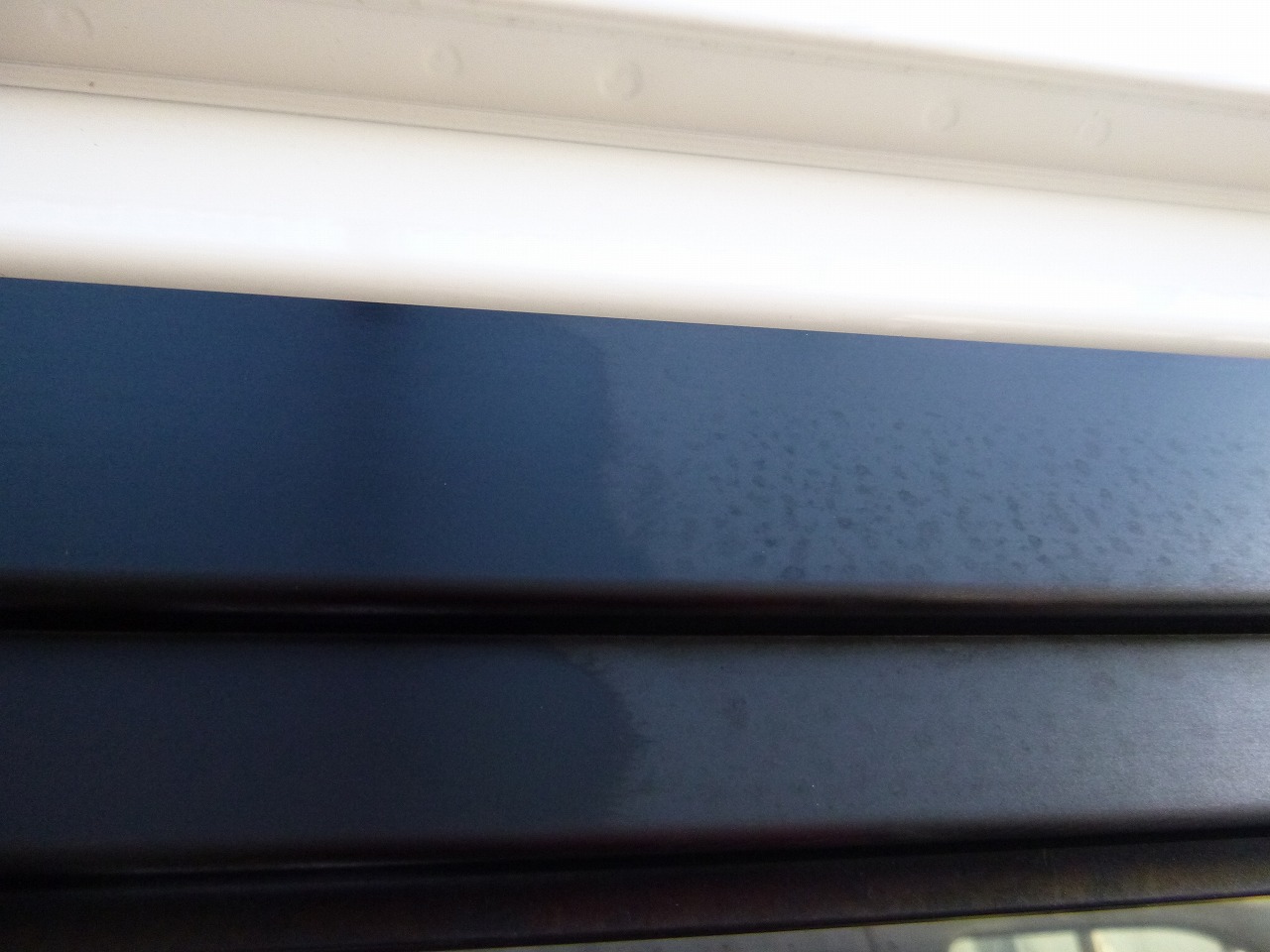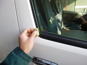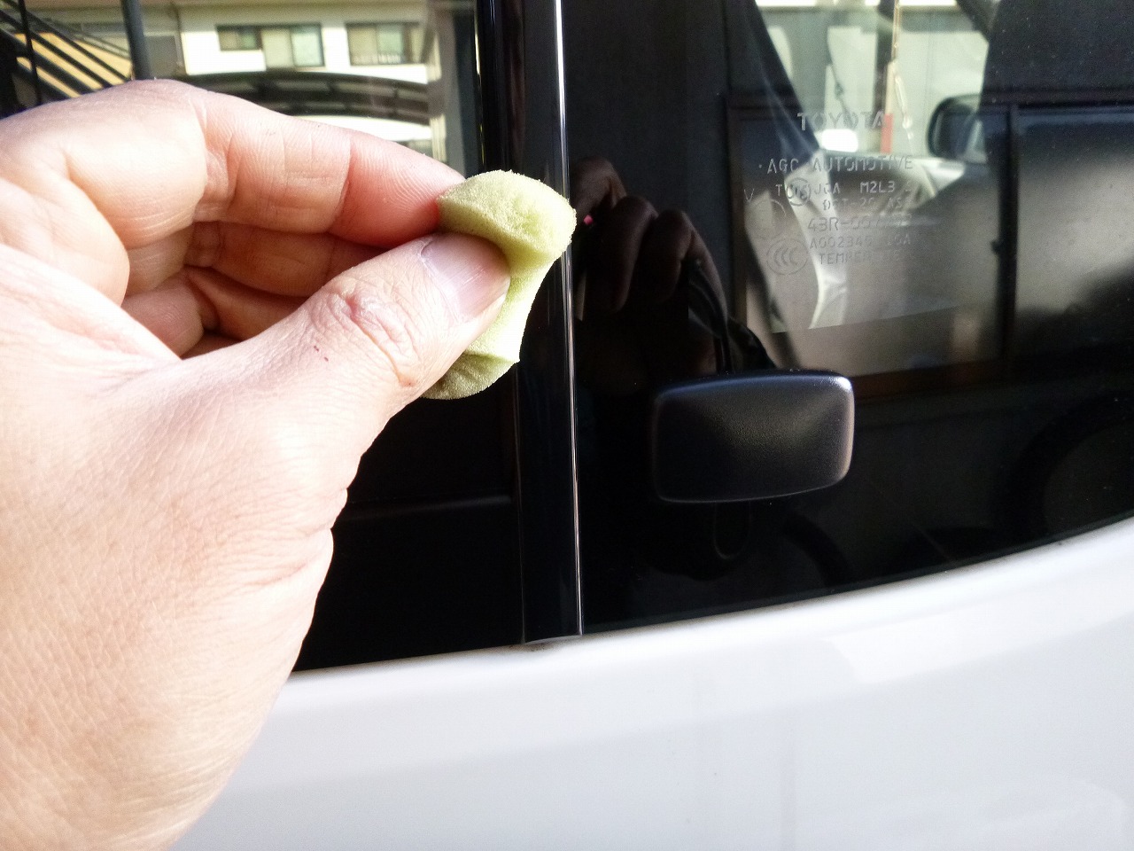 リヤ横窓 の サッシ の部分 放っておくと ↑のように 染みがスグにでちゃって・・ 「普通のワックスだと その前に磨かなきゃ」 とか 「ゴムや窓に着いて ふき取りが大変」 など ケアし難い場所です