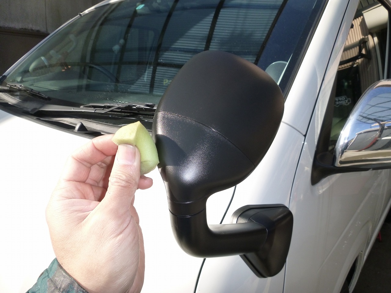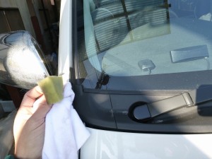 ワイパー根元樹脂など シボ のある所 ワイパーアームの黒鉄も ツヤれます