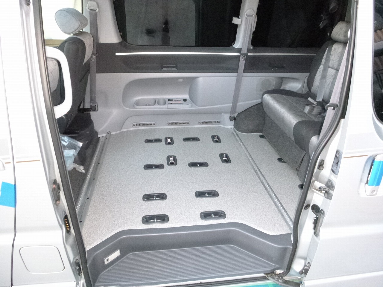 床は 沢山のシートアンカーが既に固縛フックも兼ねれて シートも倒せば寝れちゃうしアレンジ自在なの