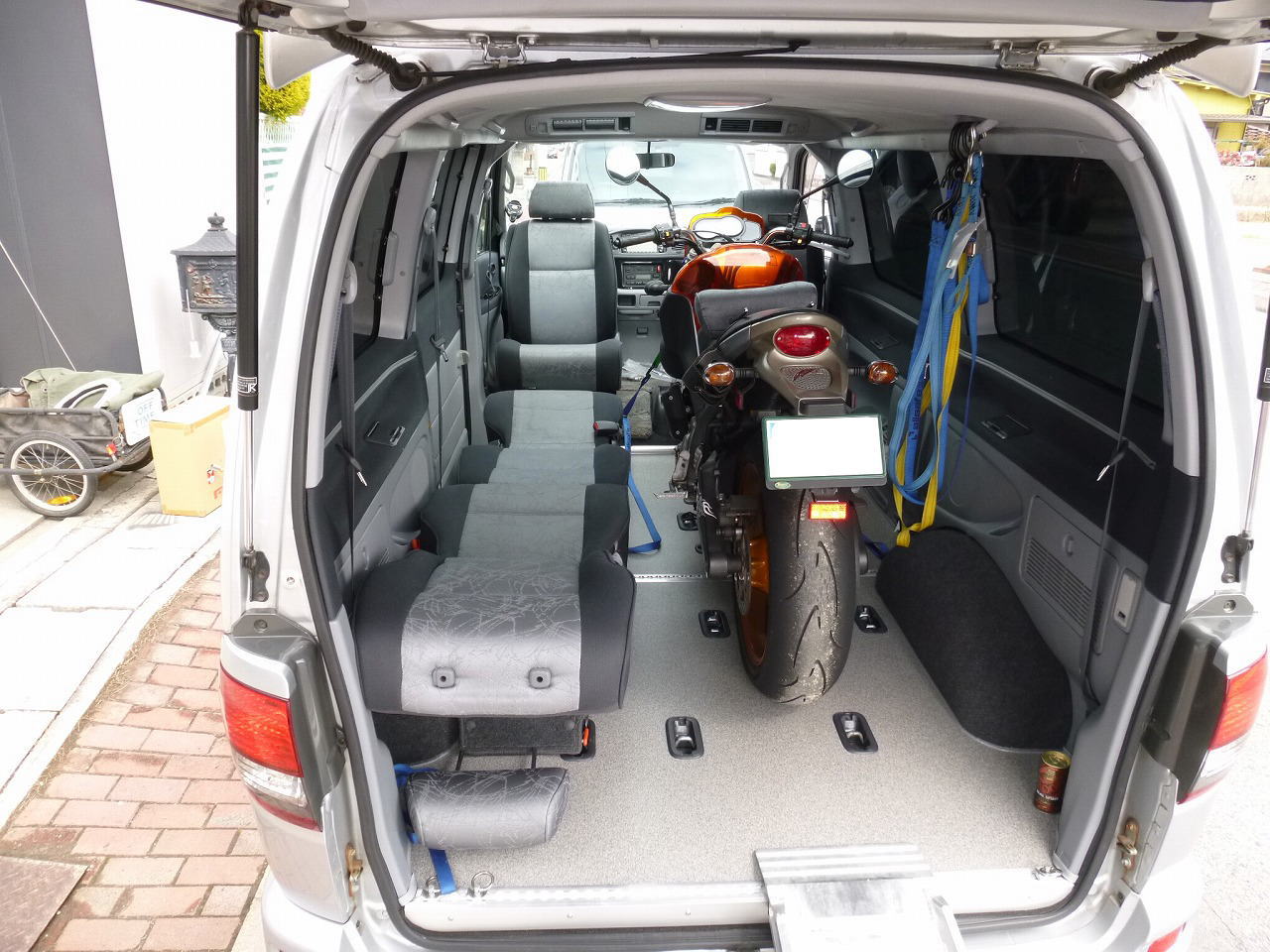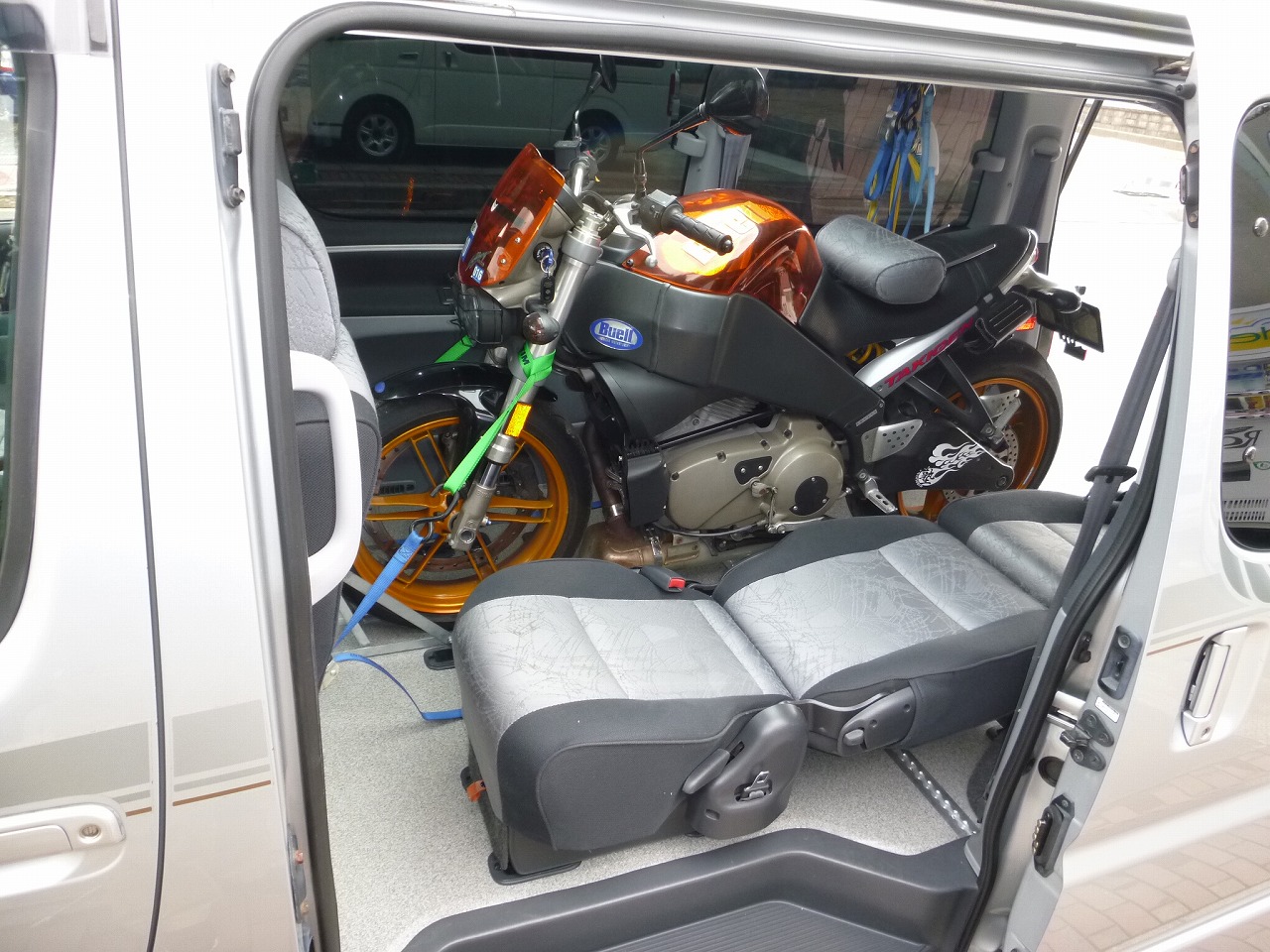 長く掛りましたが ツーリングハイエース ウインドツアラー デタッチャブルシート のバイクトランポ仕様君