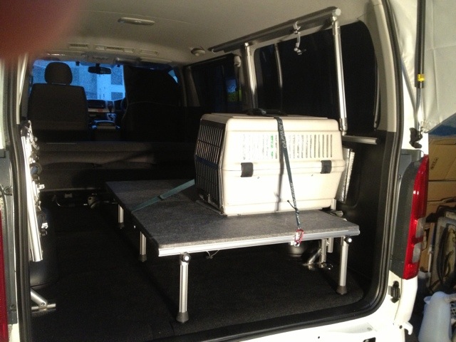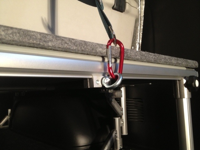 ワンちゃんと 旅行に行かれる との事 ケージを抑えるベルトと フックを付けてみました