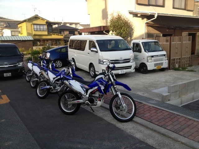 圧巻 4台の WR250R 全部オフタイマー達の車両っす ヤマハさんが呼んでるの 「お店にオイデっ」て