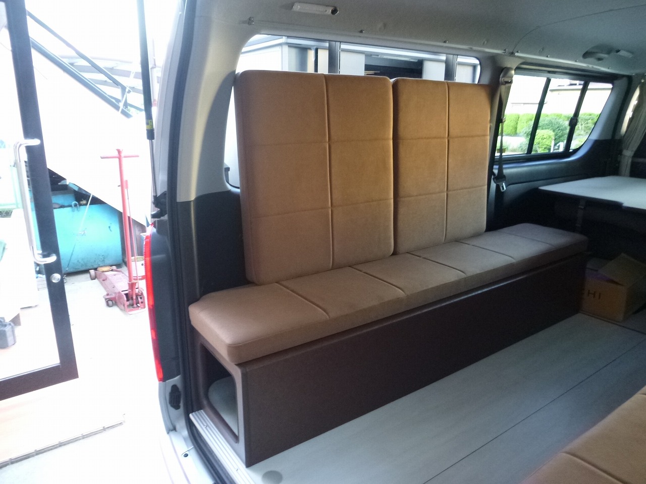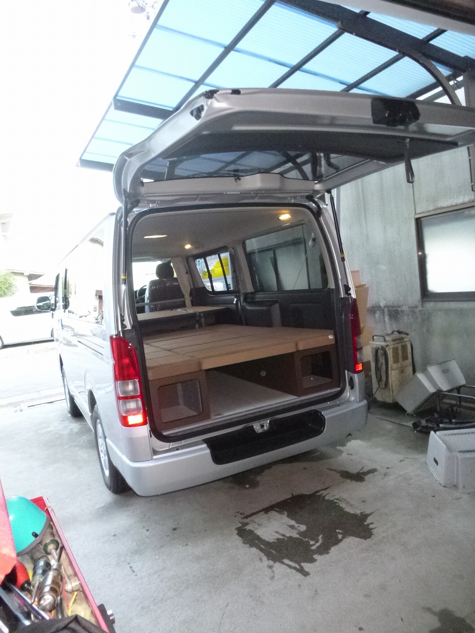 左後方はお話した通り、100Vコンセントと換気のために 一部開口式です