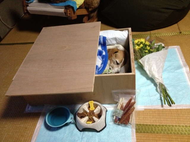 病院で看取った後カールさんを家に連れて帰りました 明日火葬してもらう為斎場に電話 ん?棺桶! なら作る!