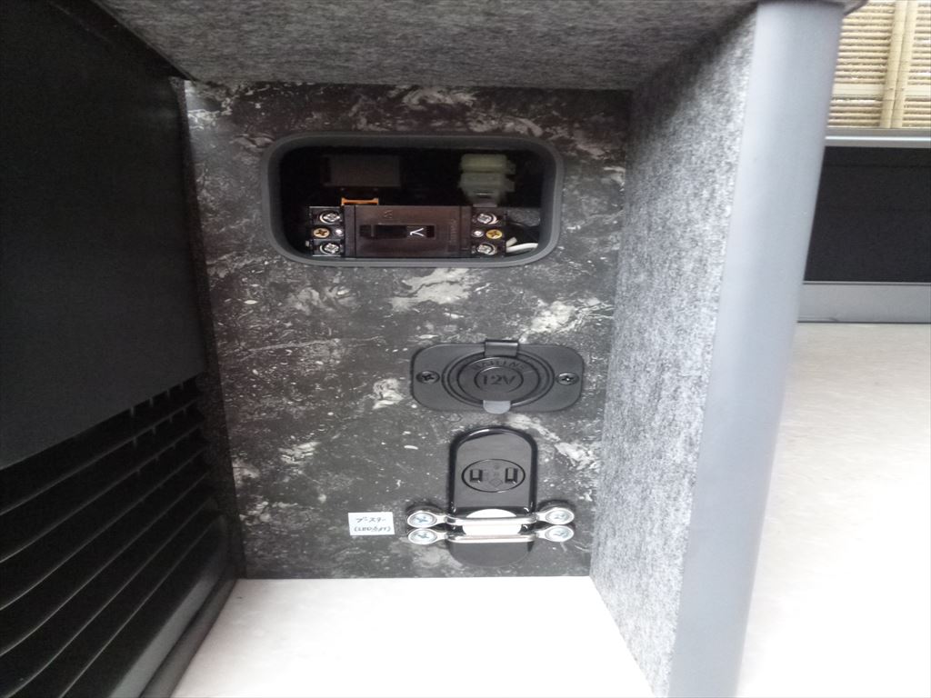 ベッドボックス右前側には、12Vシガーと100Vコンセントの他に