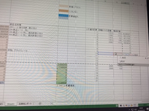 重量配分やら計算嫌いだから、次から数値入力だけで事がタルように出来たらなぁと、