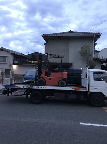今日は、TFTの上地さんが用立ててくれたフォークリフトを、島根からAJPジャパンのヒゲタさんが、忙しい中時間作って運んで来てくれました。