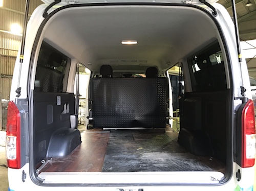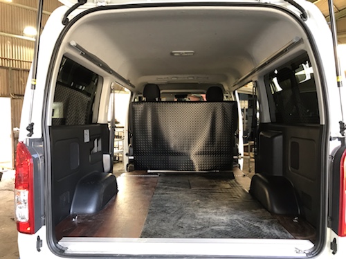 オフ車を積み易くするには、天井左右に引っ張れる所が欲しくなりますが強さも要ります、固縛しても引き千切れない強度を持たせて付けてます。