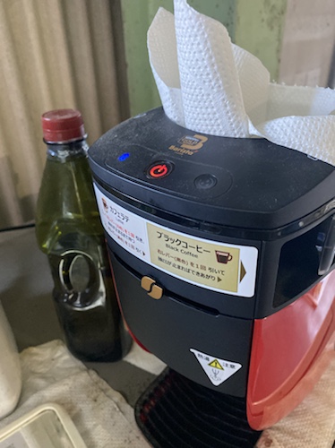 コーヒーバリスタ機の、「寒いけん動かんで赤点滅」