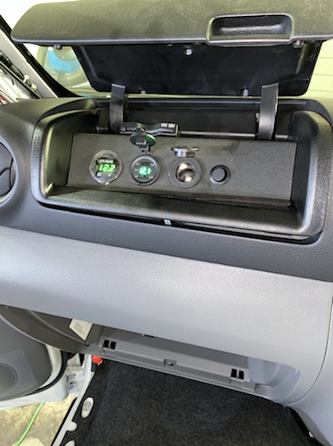 グラブボックス中もサブ取り出しとオンオフ作ってます、ん、USB電圧計はやはり、頼りには出来ないっぽい
