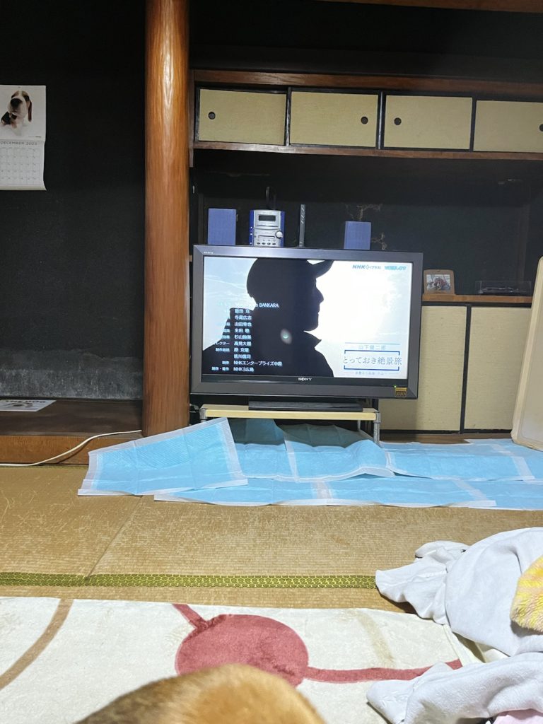 おご飯食べながら、バイクツーリングのテレビを「良いねー」言いながら観ながら、テレビ観る寅次郎の写真撮っちゃろ思ってたら、!