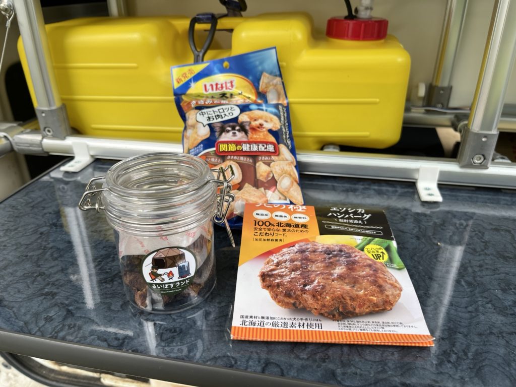 「寅ちゃんに」と自家製ジビエジャーキーや、日帰りなんだけど買って来てくれた高級ハンバーグやイナバの美味しいやつとか、みなさんに可愛がって貰えて嬉しい嬉しい