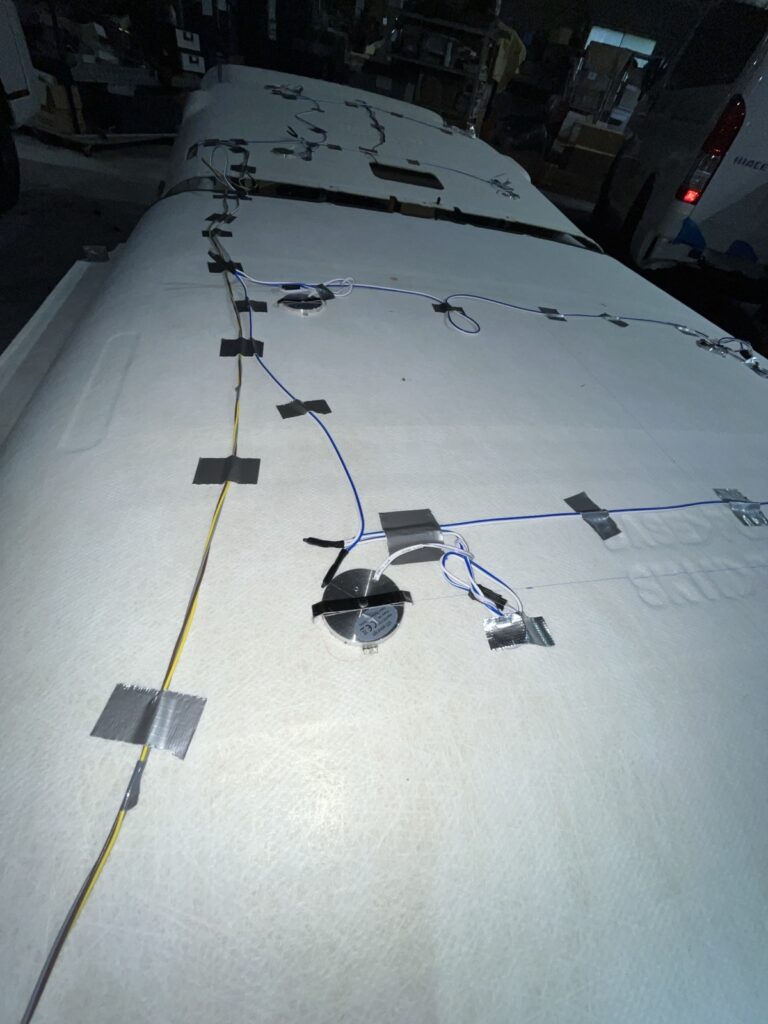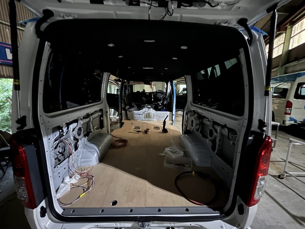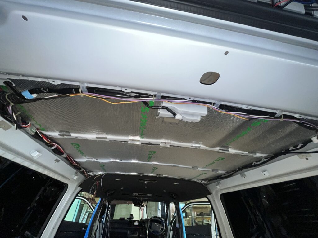 断熱処理後に、サブ系、照明系、交流系、オーディオ系、配電終わった。窓埋めやサイドバーの根太など終わらせて