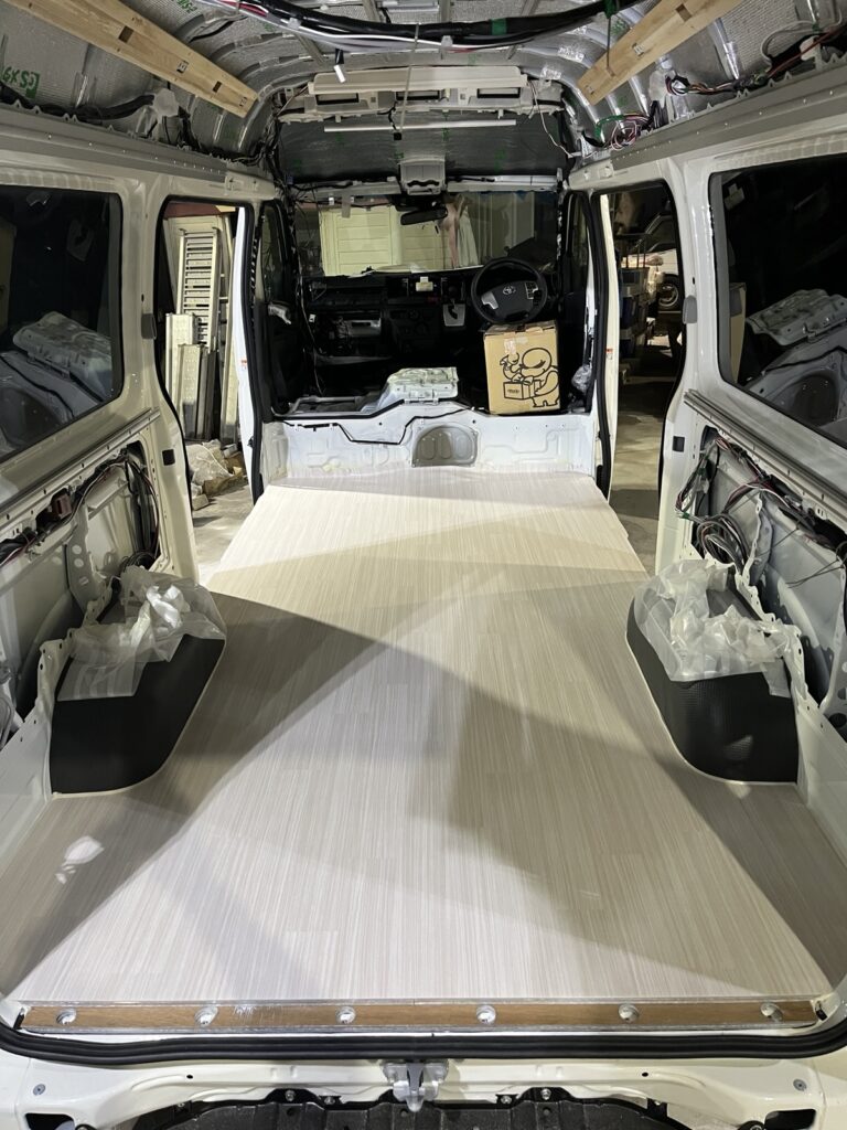 ハイエース君、経年で、車高が勝手に下がる傾向にありますね、重たいもん積んだままだとね。バンでも1センチ位は下がるん居る。