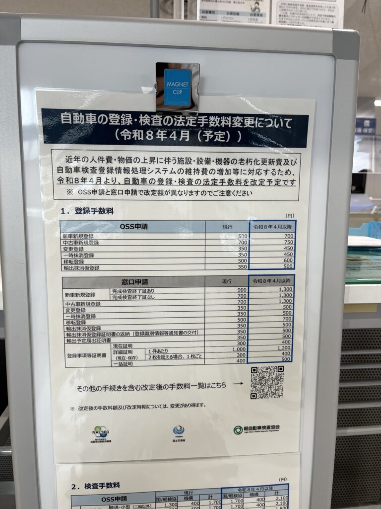 車の検査やなどに掛かる手数料