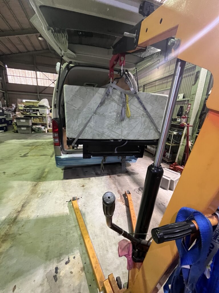 50代 機械に頼る。シート脱着はエンジンクレーン改のおかげでガラスの腰でも大丈夫