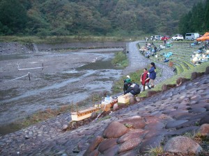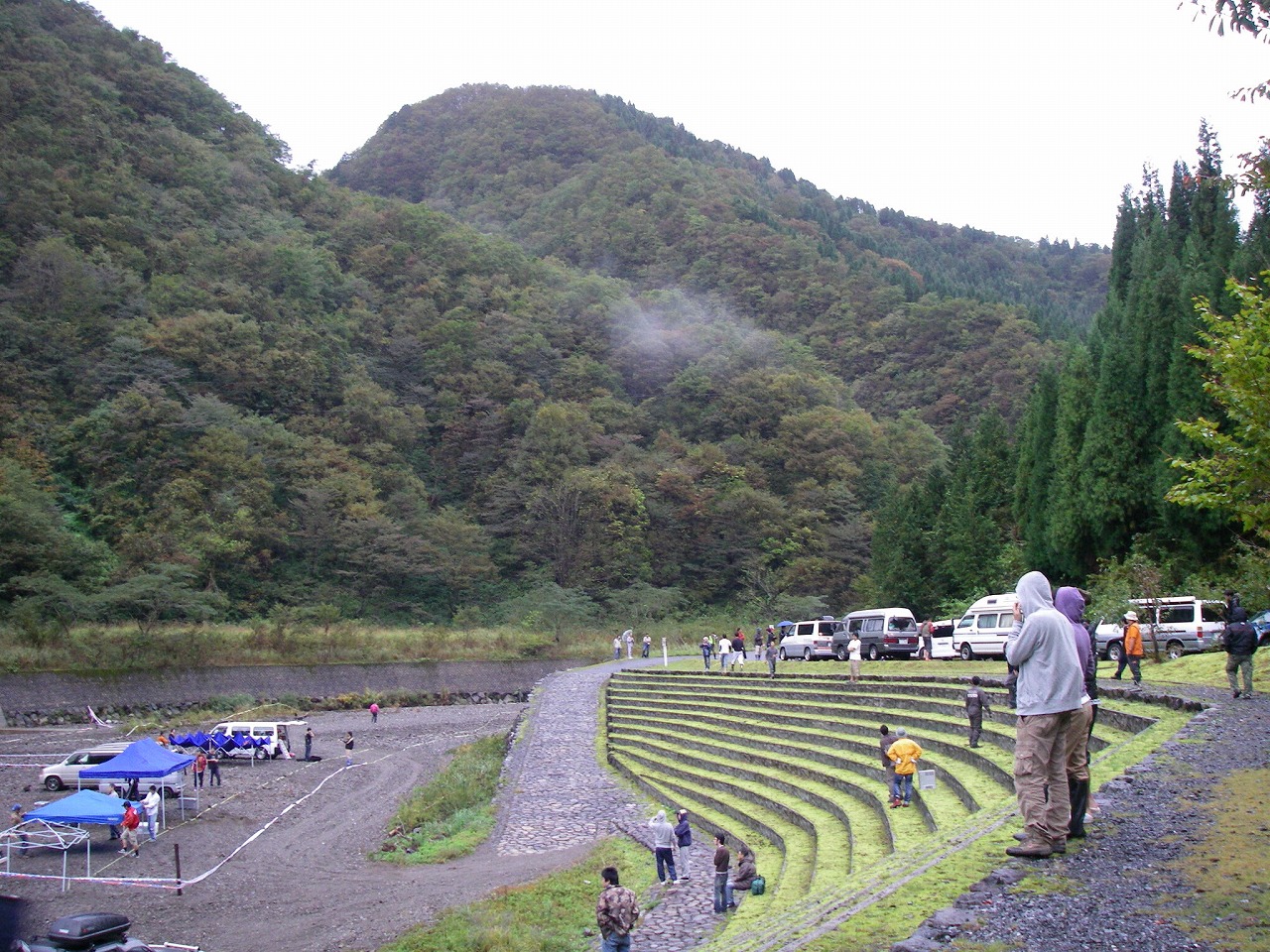 みんなでササーっと撤収 なす術も無く皆で川を眺める 「自然には勝てん」 「しかし激しく雨降ったねー」 「・・・・・」